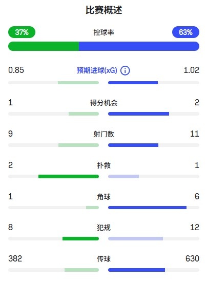 比赛在夜里开打,很多朋友可能没时间看直播,所以我们不妨把数据对比作为第一个研究点。国米在控球率、传球数、传中数等基础数据上比米兰多很多,然而实际创造出的机会两队却相差无几。虽然控球率是63%-37%,但国米比米兰的射门数仅仅多了2次,且射正数居然同为2次。这很能说明问题。